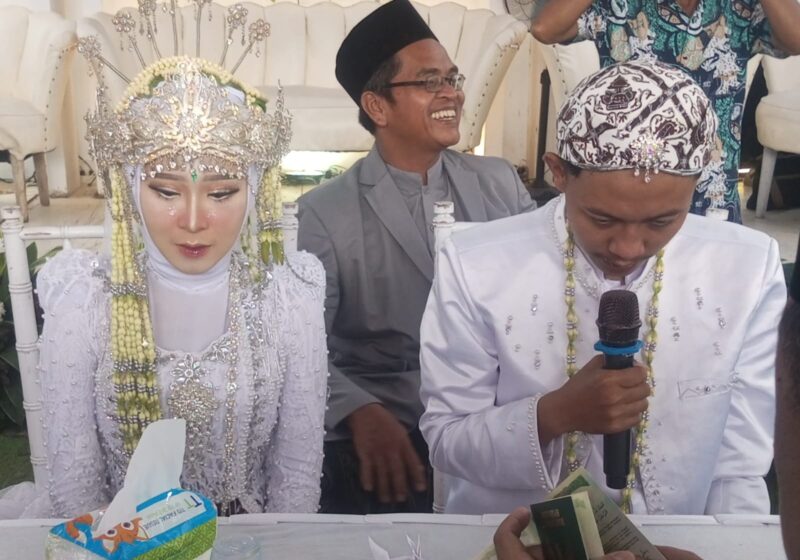 Tepat pukul 09:30 Wib, prosesi ijab kabul dilaksanakan dan dipimpin langsung oleh Pengurus KUA Kecamatan Leuwisadeng, Ahmad Junaedi Dengan satu tarikan napas yang lancar dan mantap, M.Toni Riyadi mengucapkan ijab kabul sesuai ketentuan syariat Islam dan peraturan perundang-undangan yang berlaku.